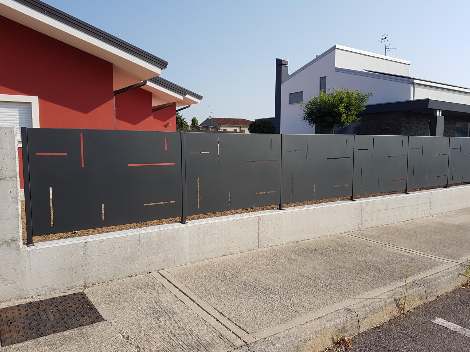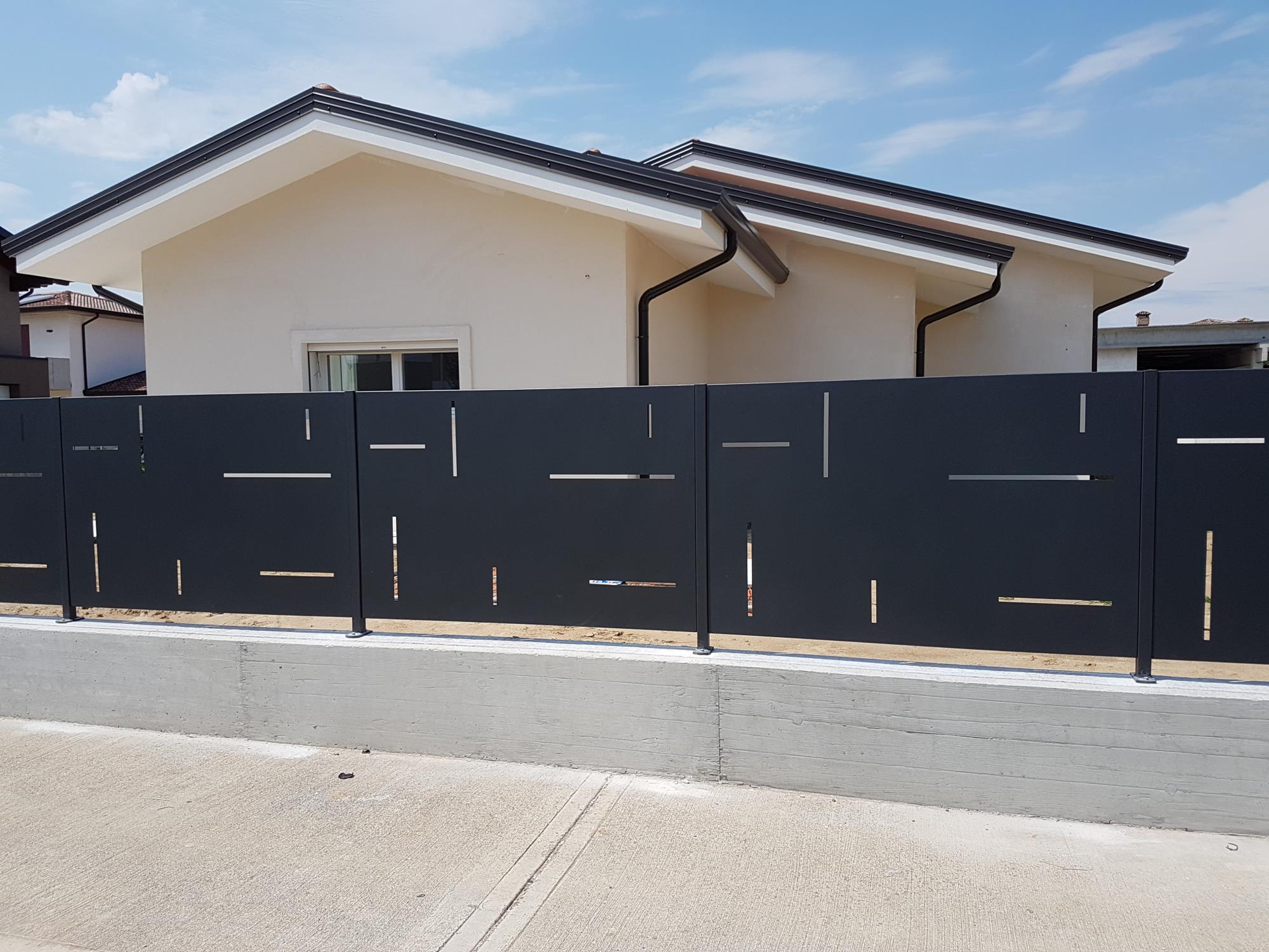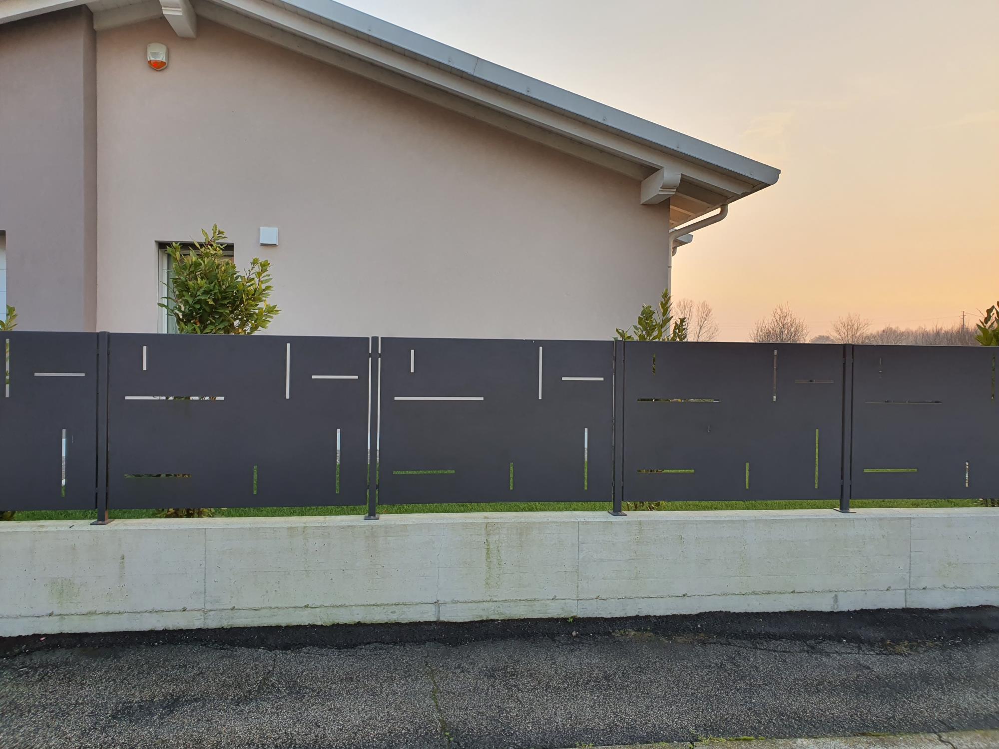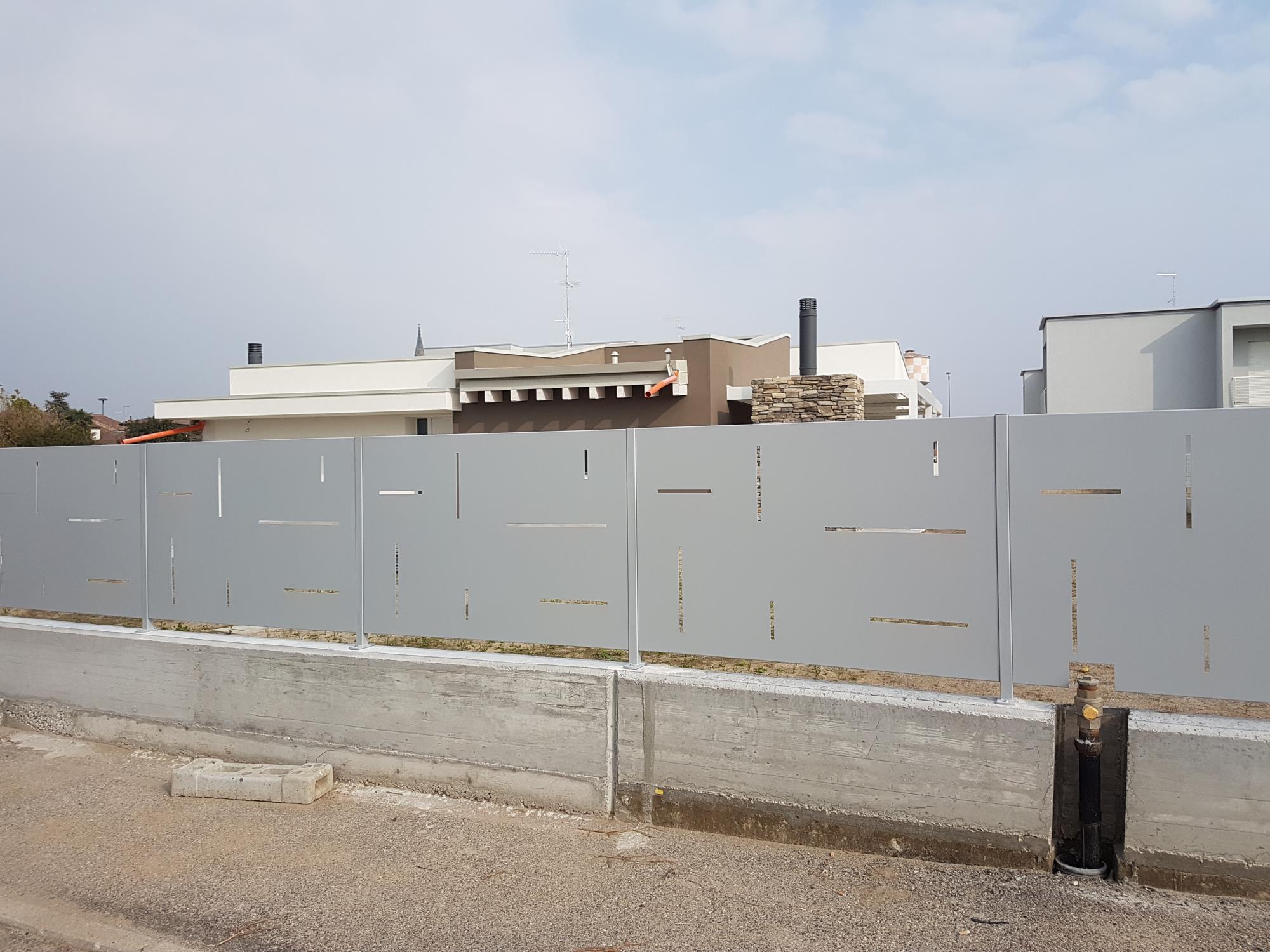 Recinzione in lamiera con feritoie.