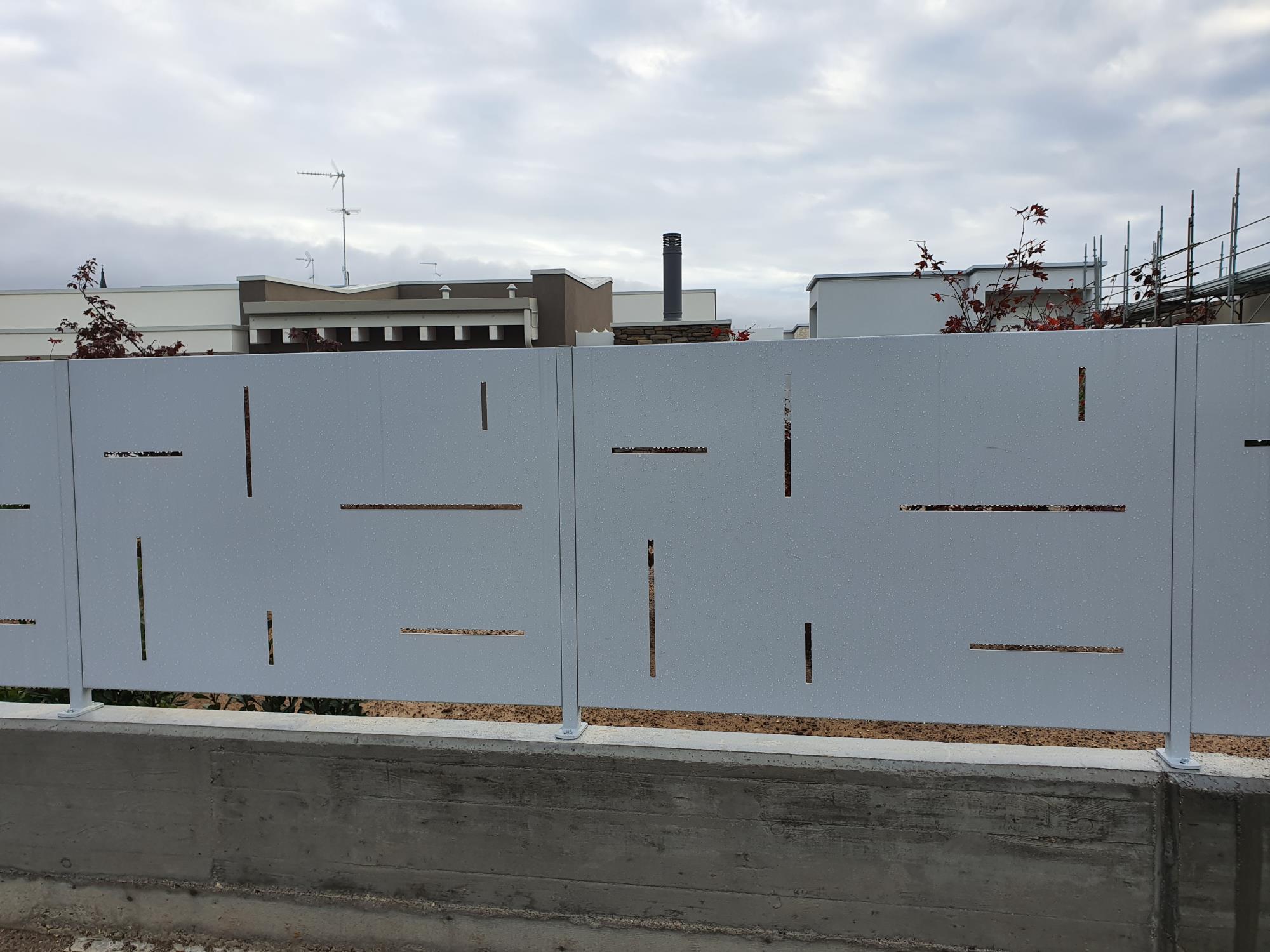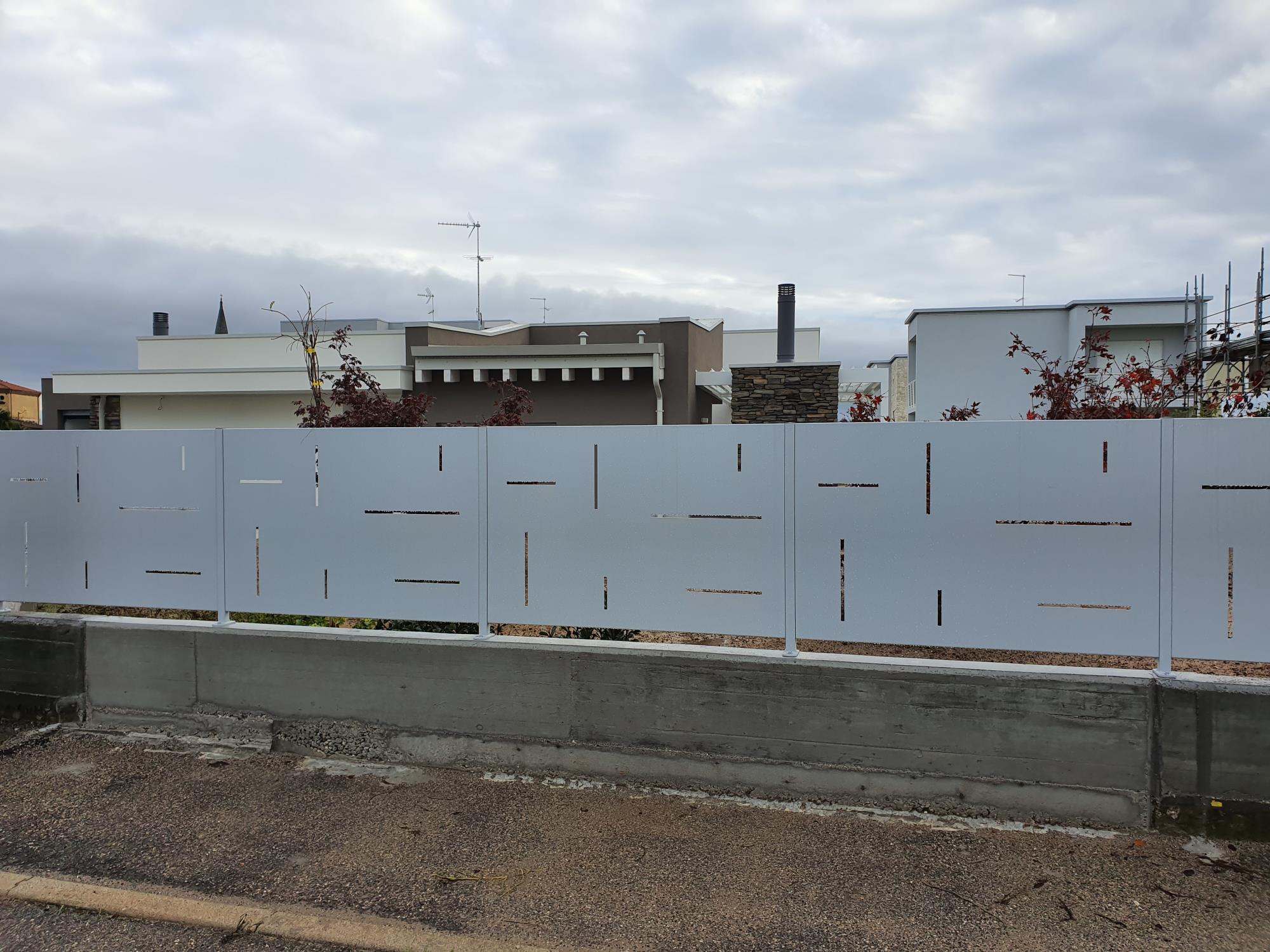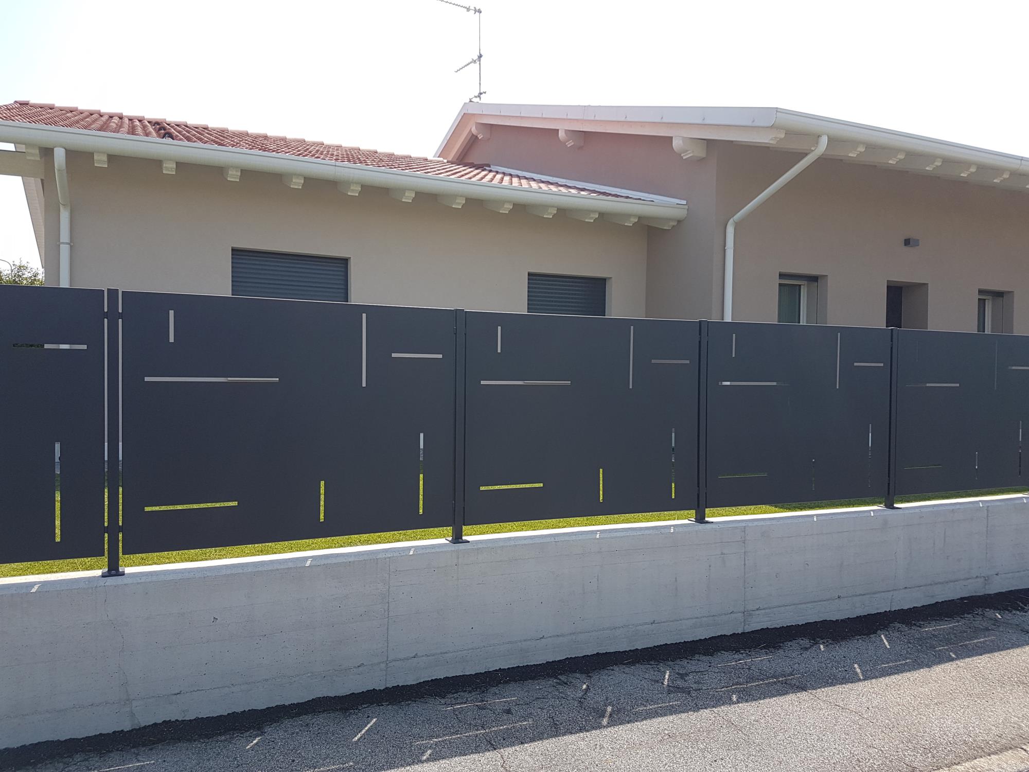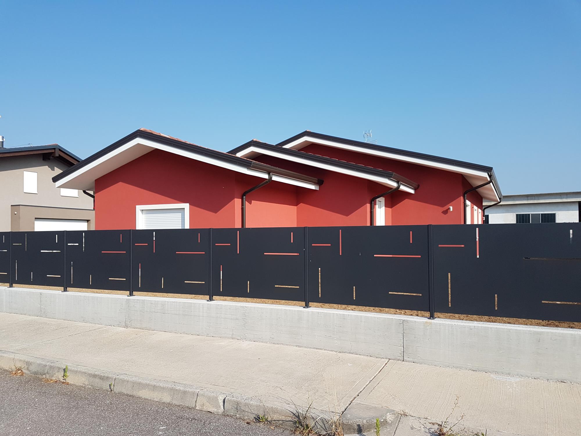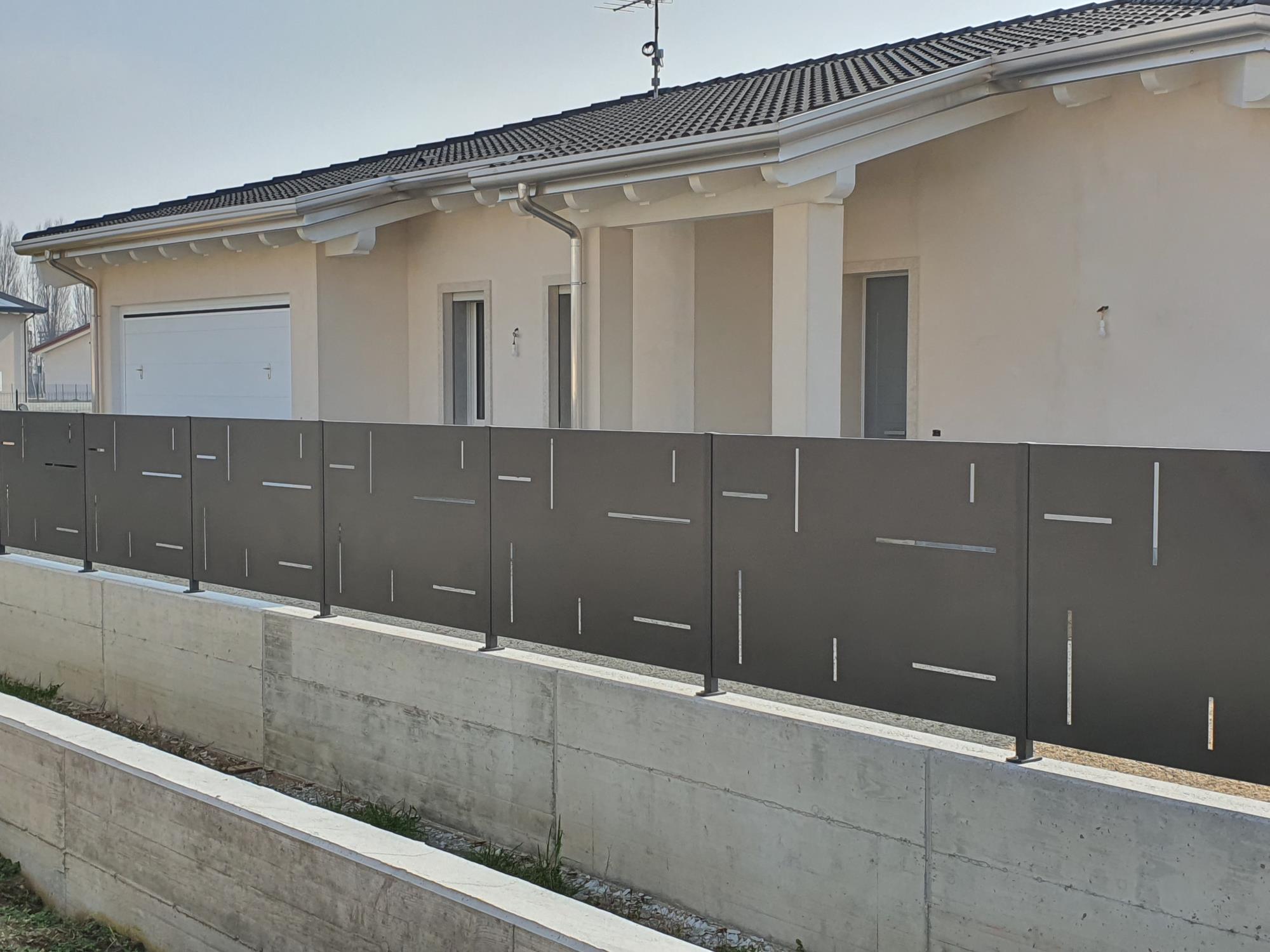 Recinzione in lamiera con feritoie.