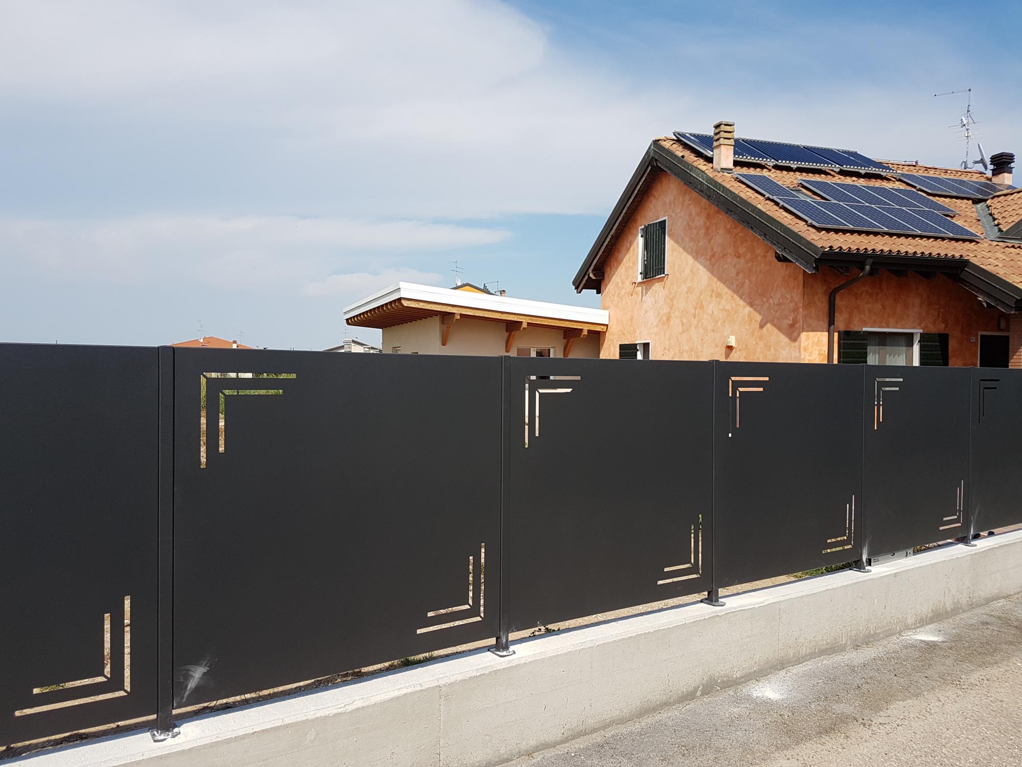 Recinzione in lamiera con feritoie.
